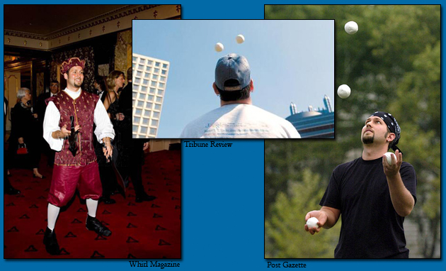 Bob the Juggler is one of the most well-known performers in the area. His extraordinary skills have gotten him featured in every major media outlet in the Pittsburgh area. Check out these photos from the Pittsburgh Post Gazette, Pittsburgh Tribune Review and Whirl Magazine.